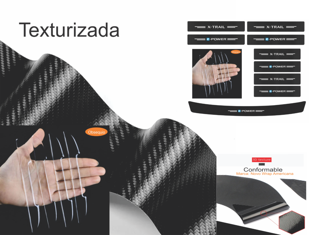 Protege y personaliza tu vehículo con nuestros productos de cinta tipo fibra de carbono Novo Americana resistente, CONFORMABLE y con un acabado de alta calidad. ¡La protección y el estilo que tu auto merece!